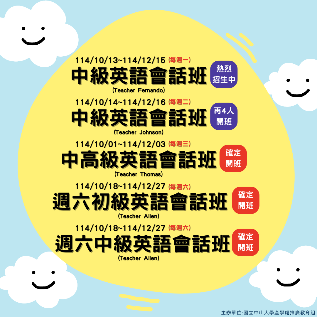 📆上課日期|114.09月份~114.12月份 (依課程日期為主)