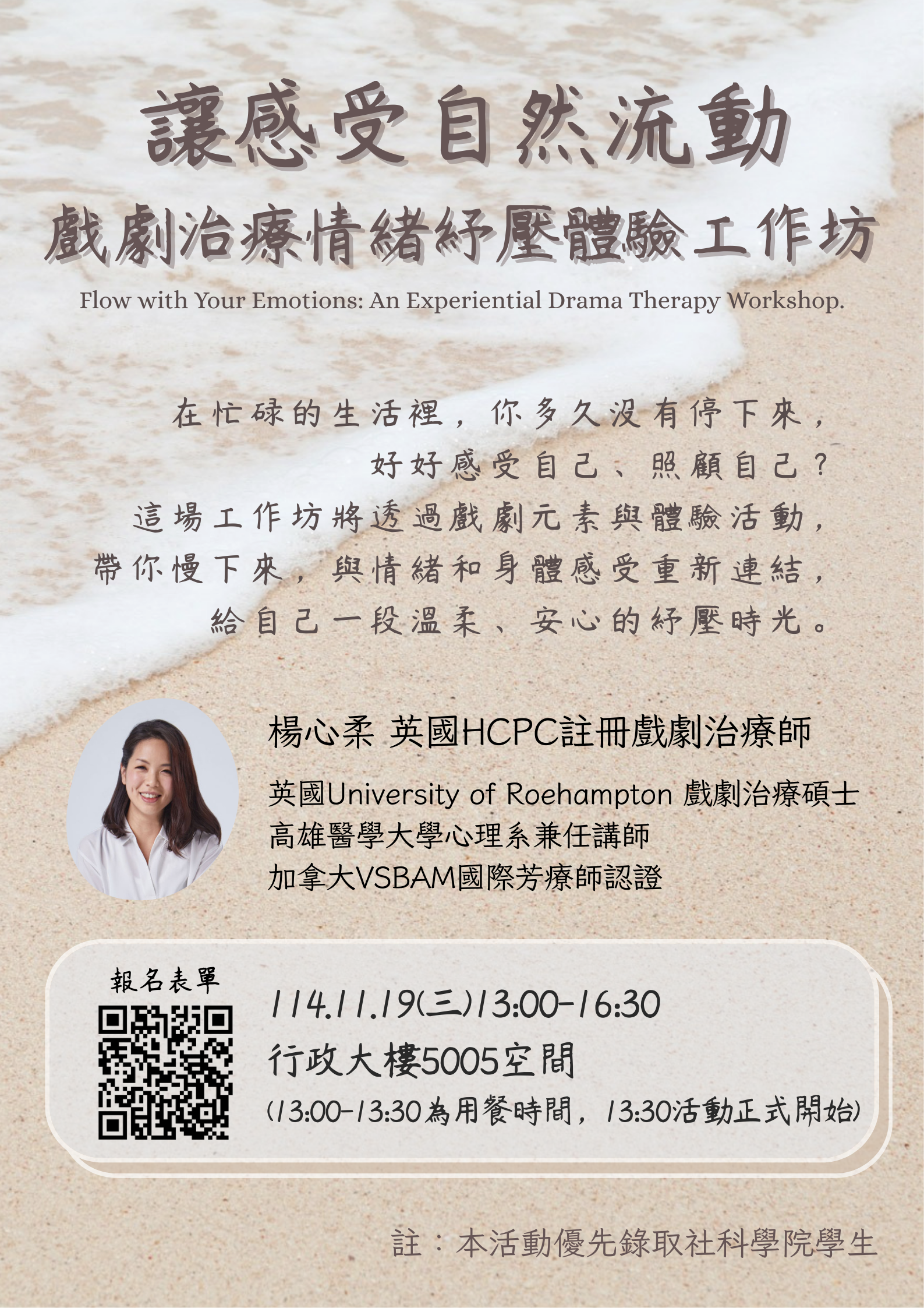 【讓感受自然流動:戲劇治療情緒紓壓體驗工作坊】Flow with Your Emotions: An Experiential Drama Therapy Workshop