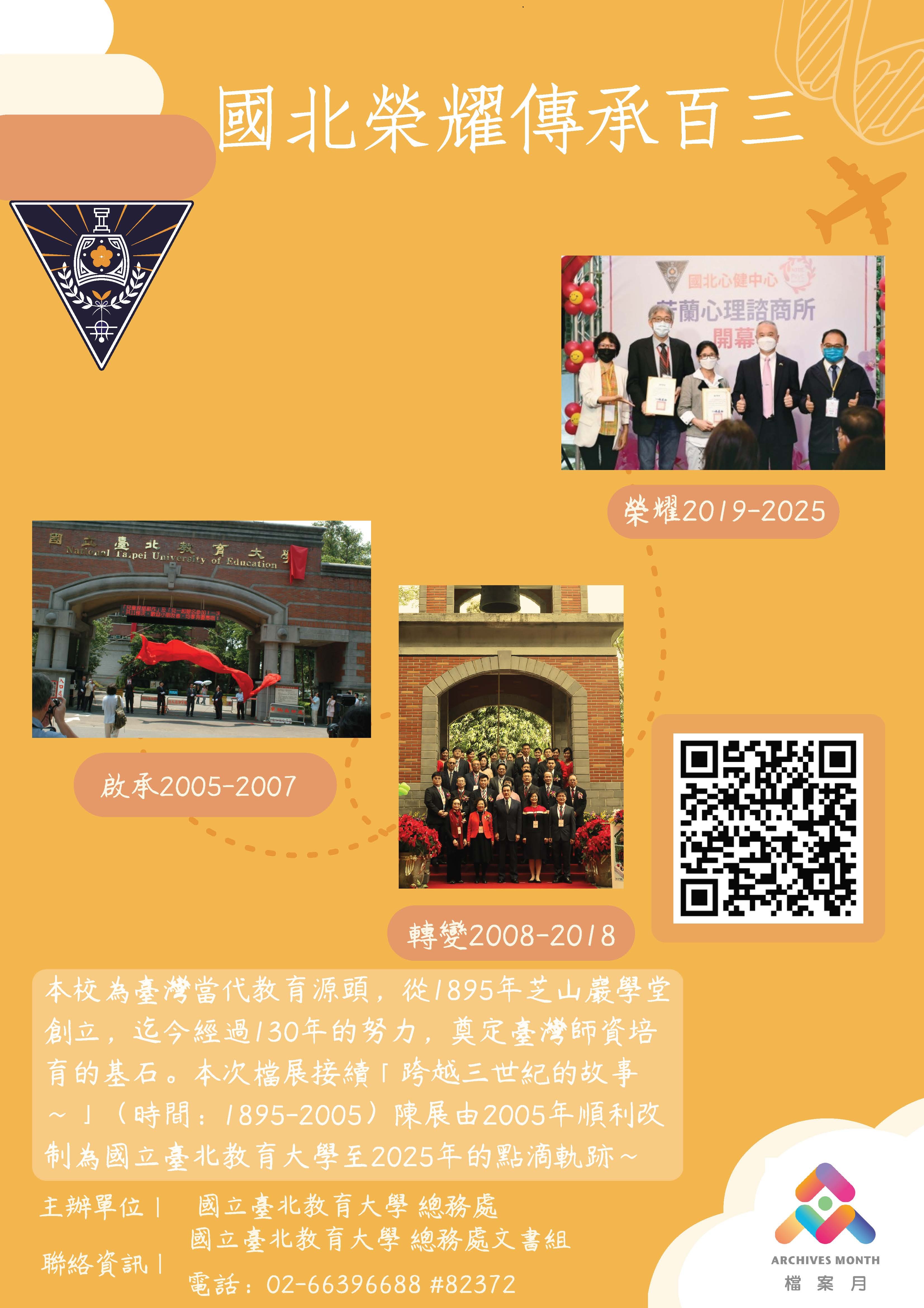 函轉國立臺北教育大學為慶祝130週年校慶,特舉辦「國北榮耀傳承百三」線上檔案展,敬請惠予公告並轉知所屬點閱瀏覽。