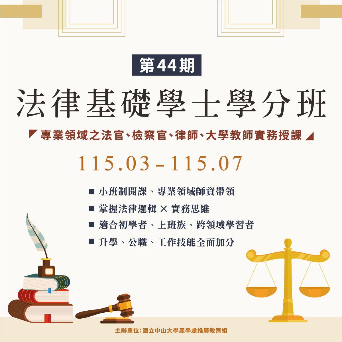 💡協助非法律相關科系、對法律有興趣,或欲參與相關國家考試的社會人士。