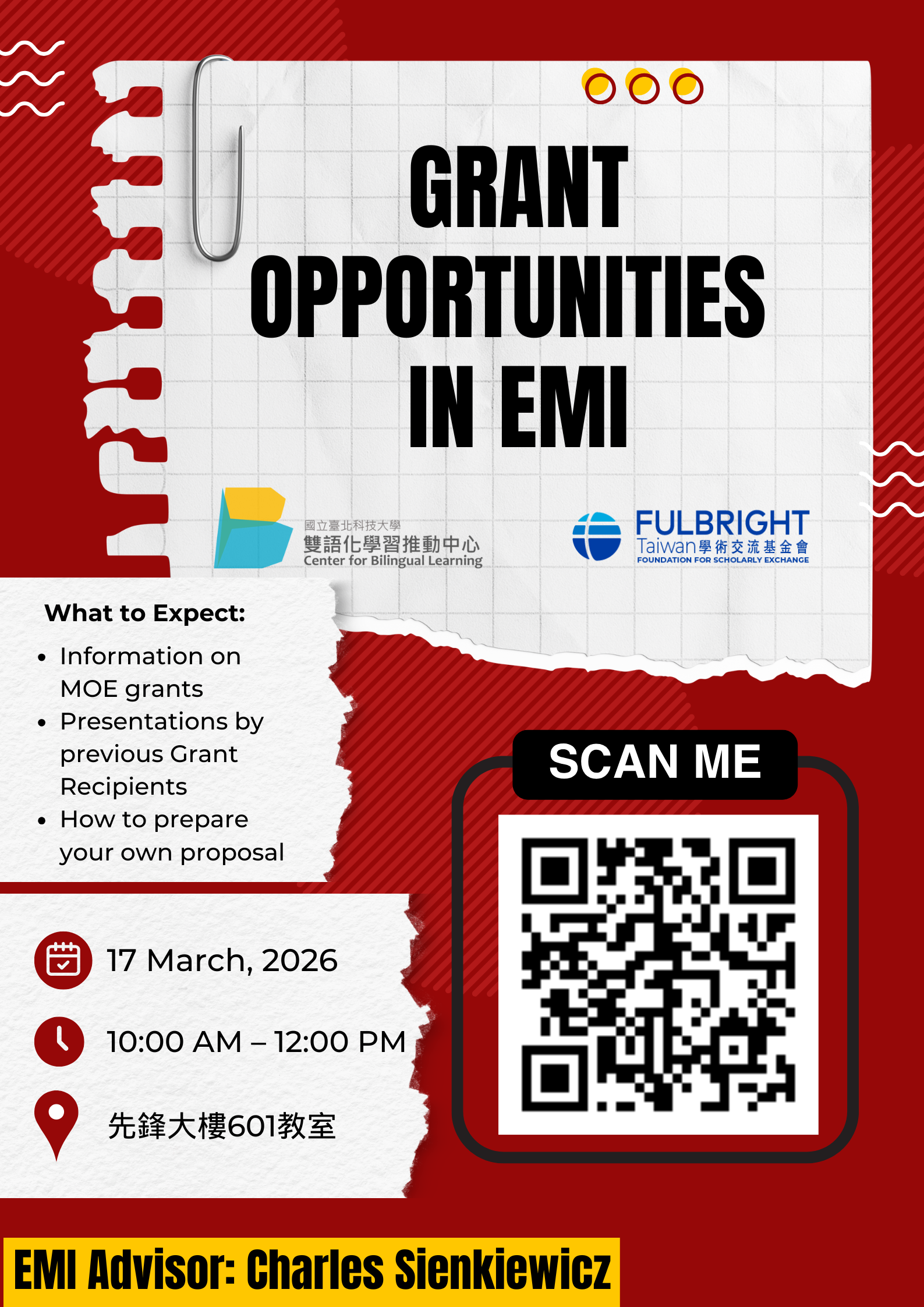 國立臺北科技大學辦理「Fulbright EMI workshop:Research in EMI - Grant Opportunities」