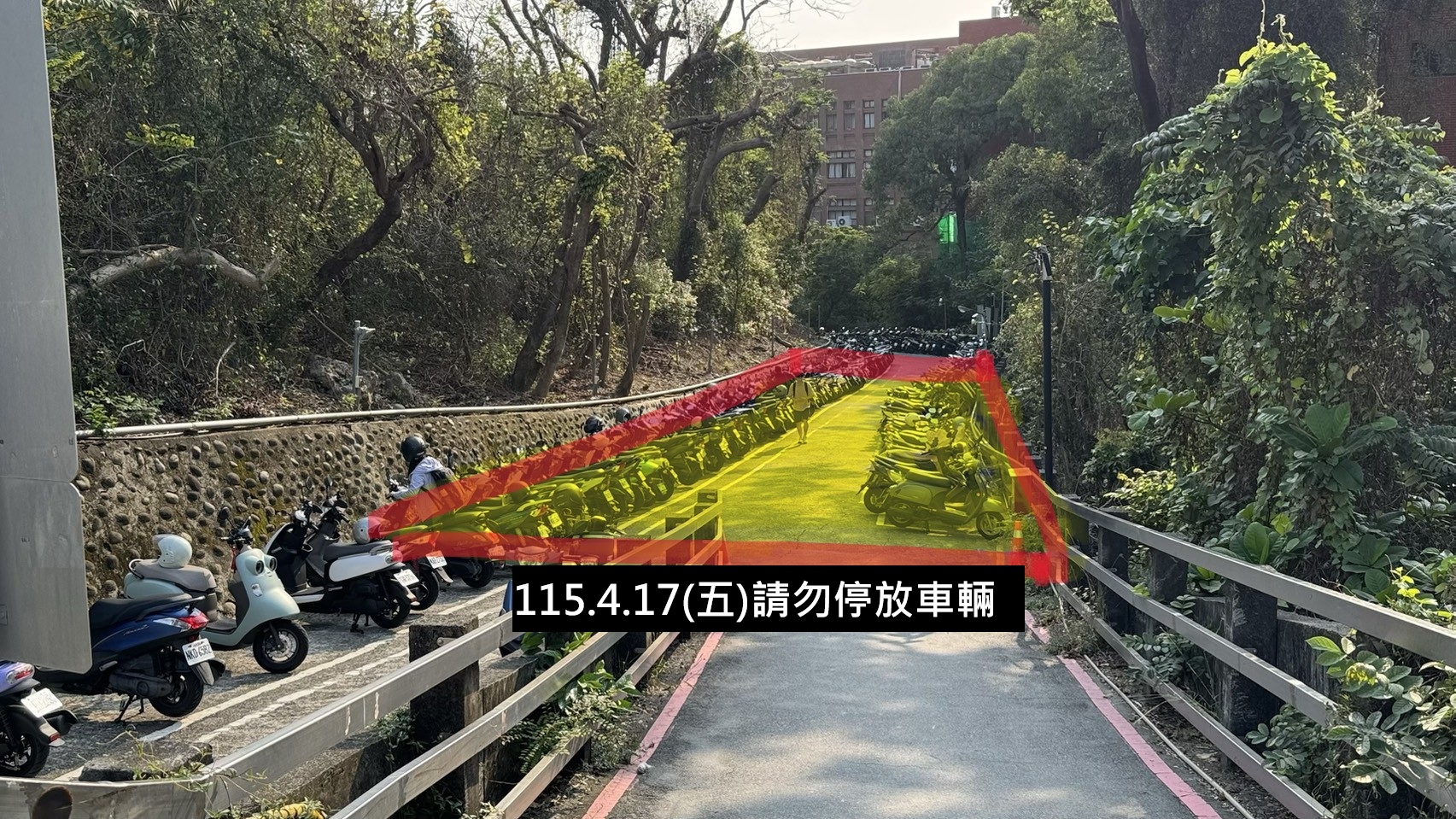 <灌漿施工公告>115.4.17(五)翠亨宿舍L棟後側機車道灌漿作業施工,請勿停放車輛,謝謝